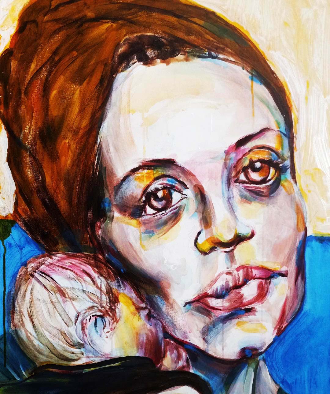 Bold acrylic paintings with vibrant colors and rich textures.