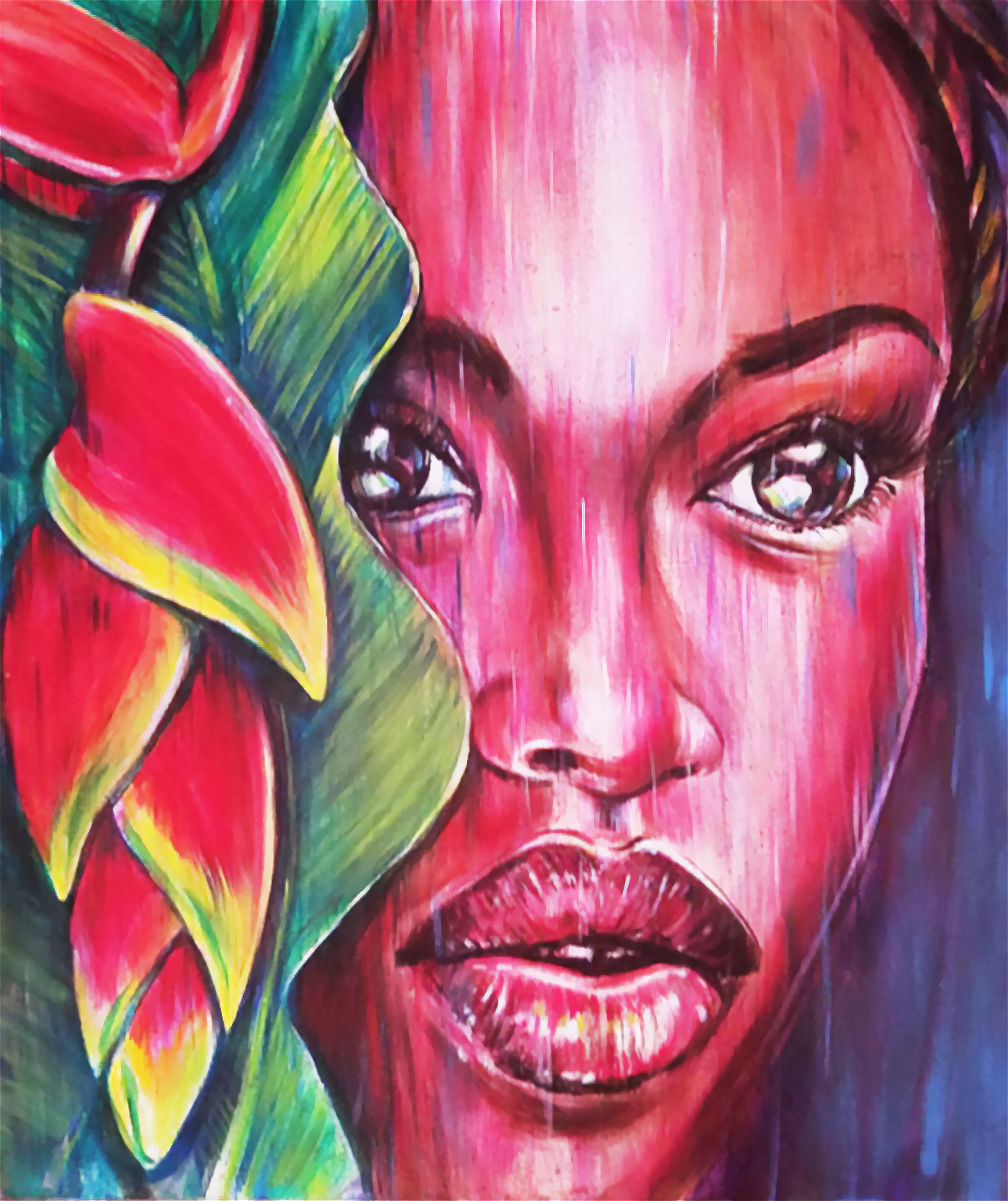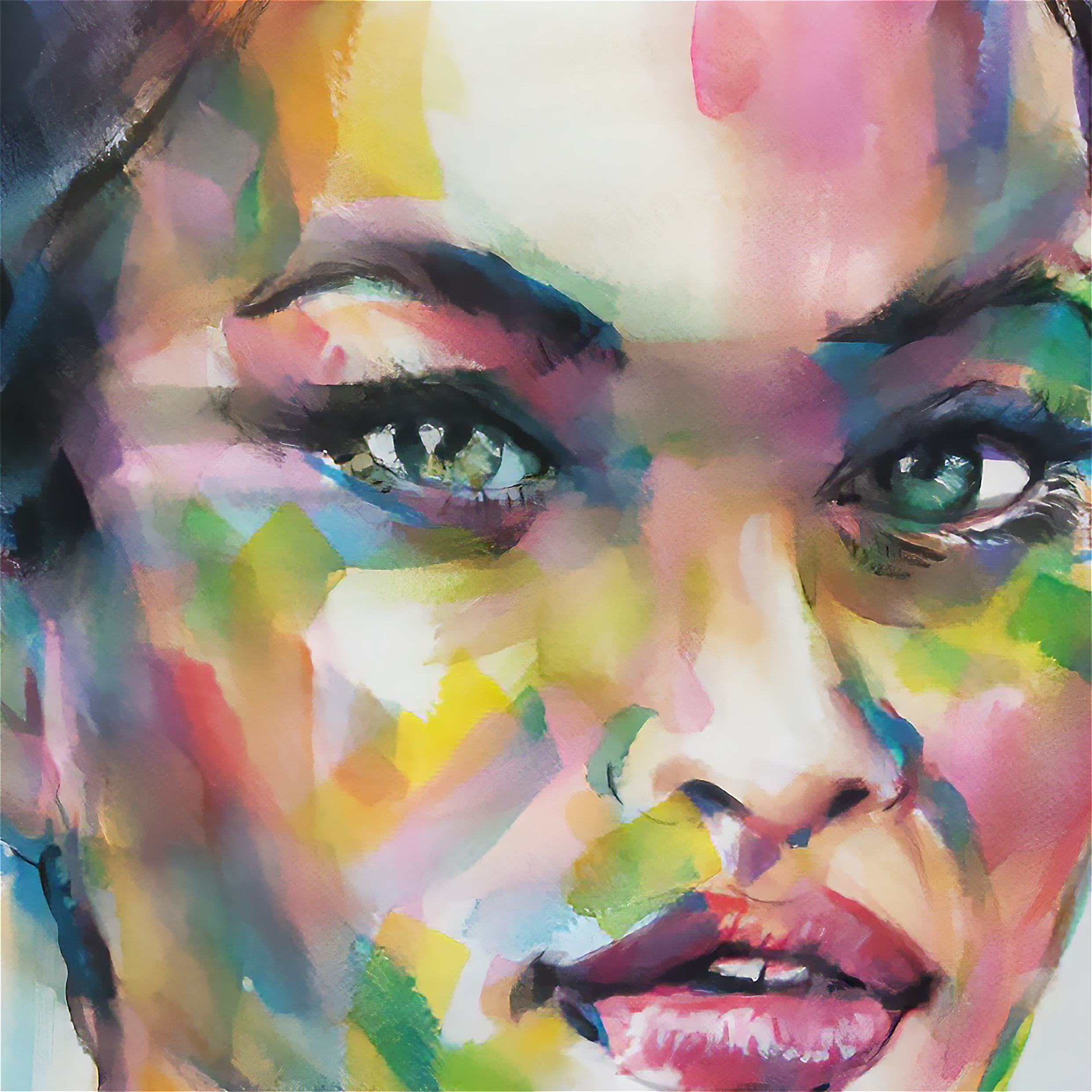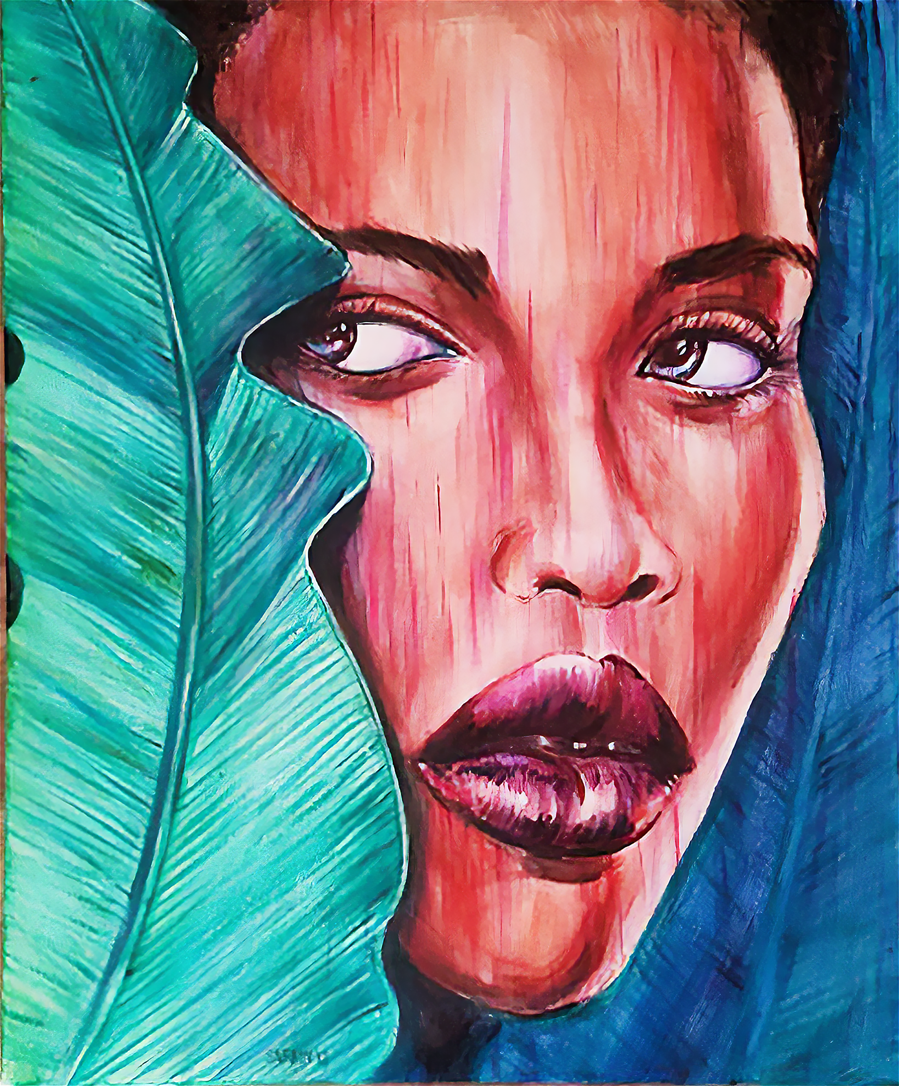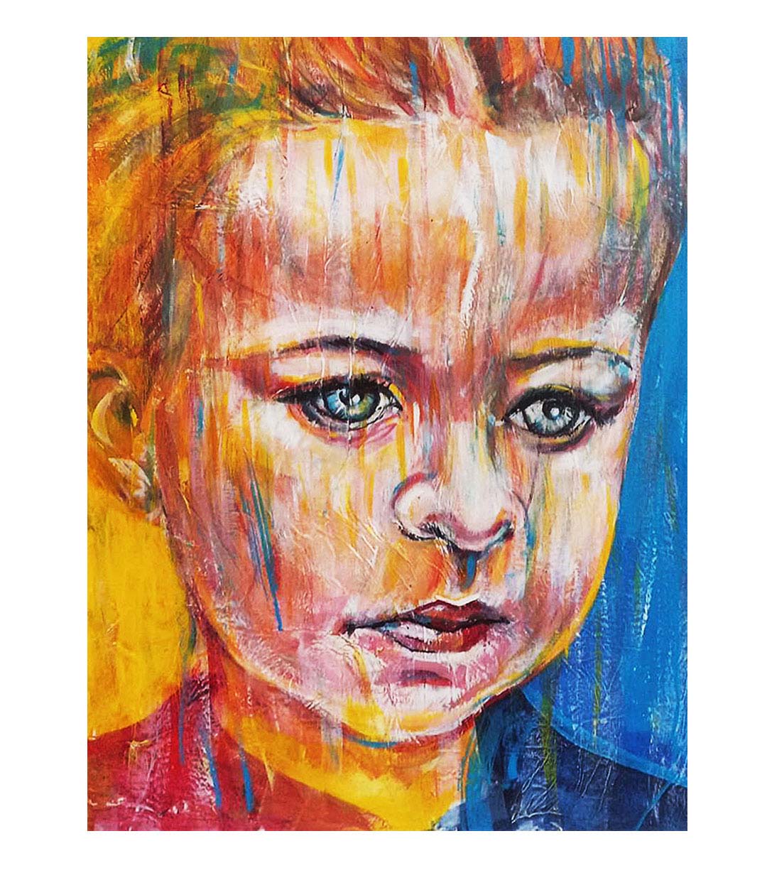 Bold acrylic paintings with vibrant colors and rich textures.